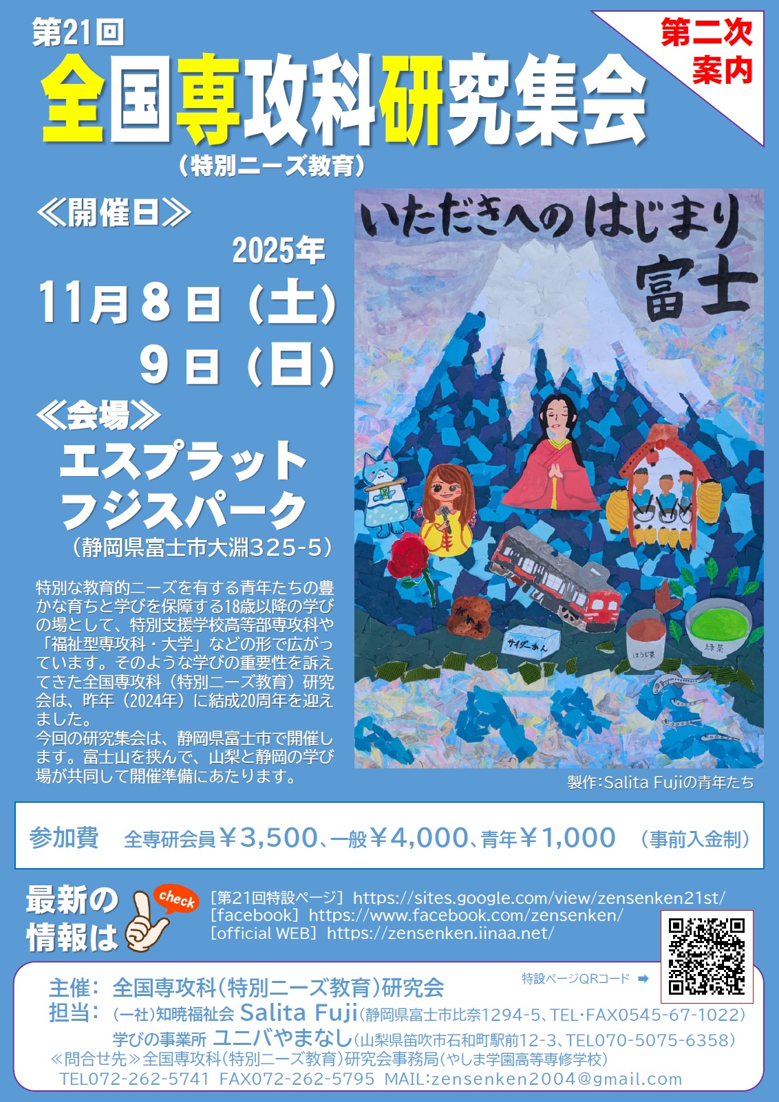 第21回全専研集会を、2025年11月8・9日に静岡県富士市で開催します。第二次案内として、参加申込受付を開始しましたので、10月24日(金)までにお申込ください。